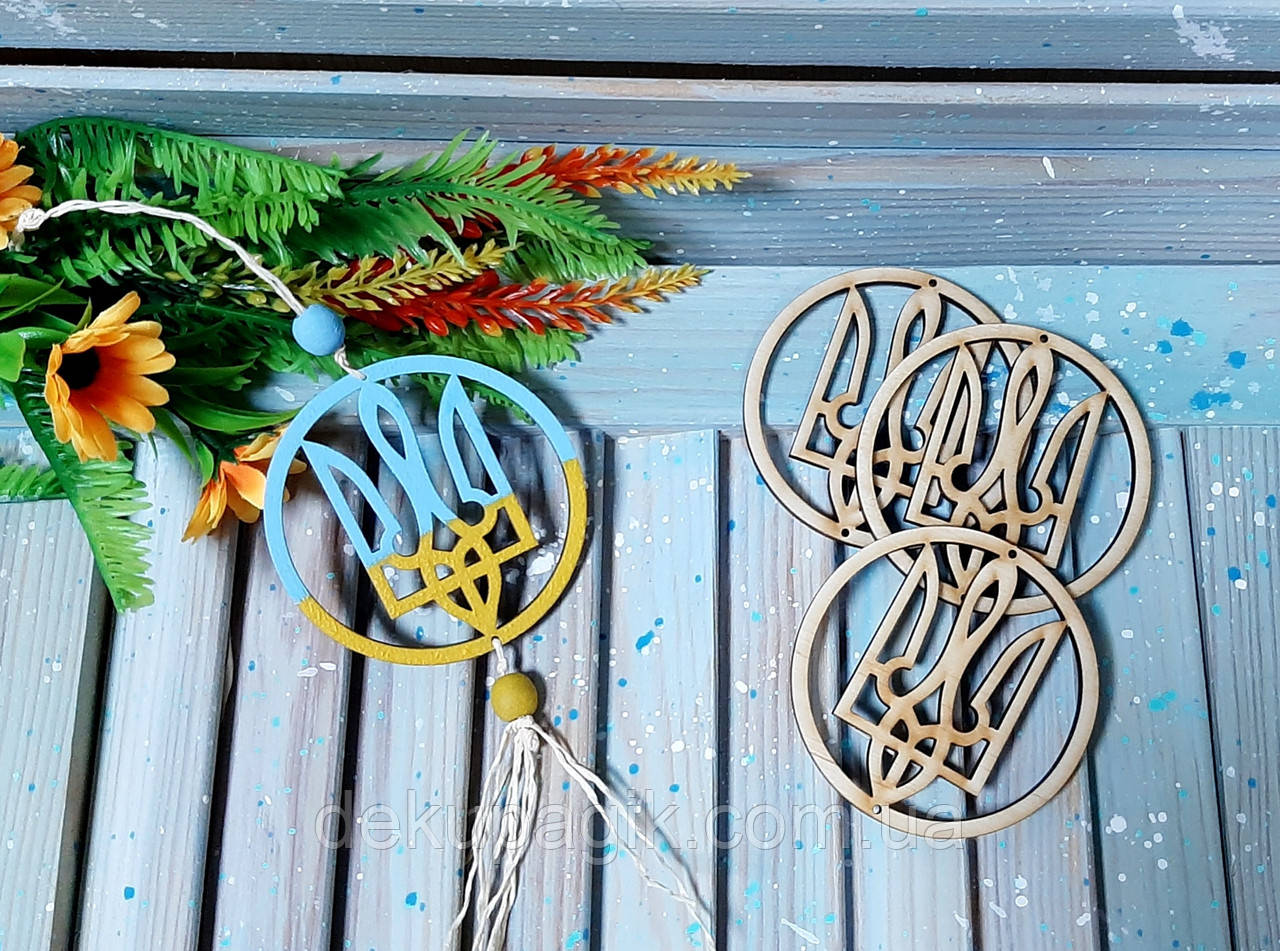 Підвіска Тризуб (Герб України) 8см, фанера 4ммНемає в наявності